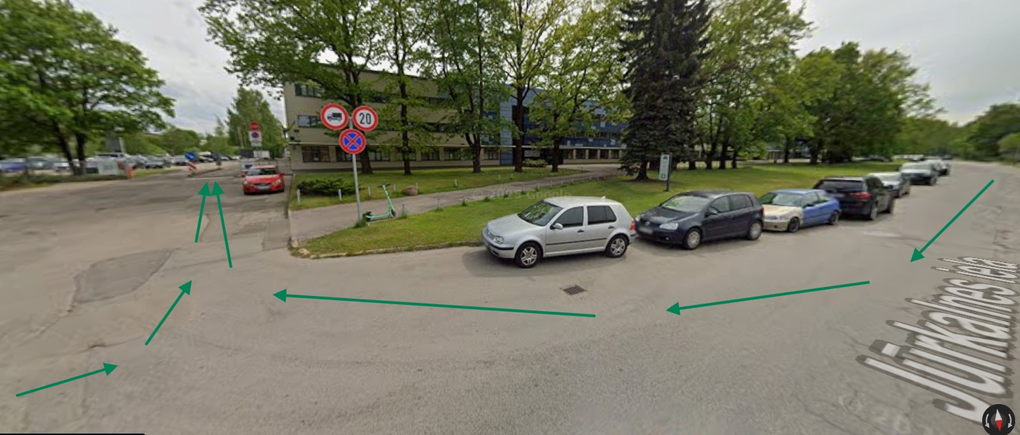 Viesu bezmaksas autostāvvieta Jūrkalnes iela 15/25, C iebrauktuve ēkas kreisajā pusē, norāde – viesu zona.