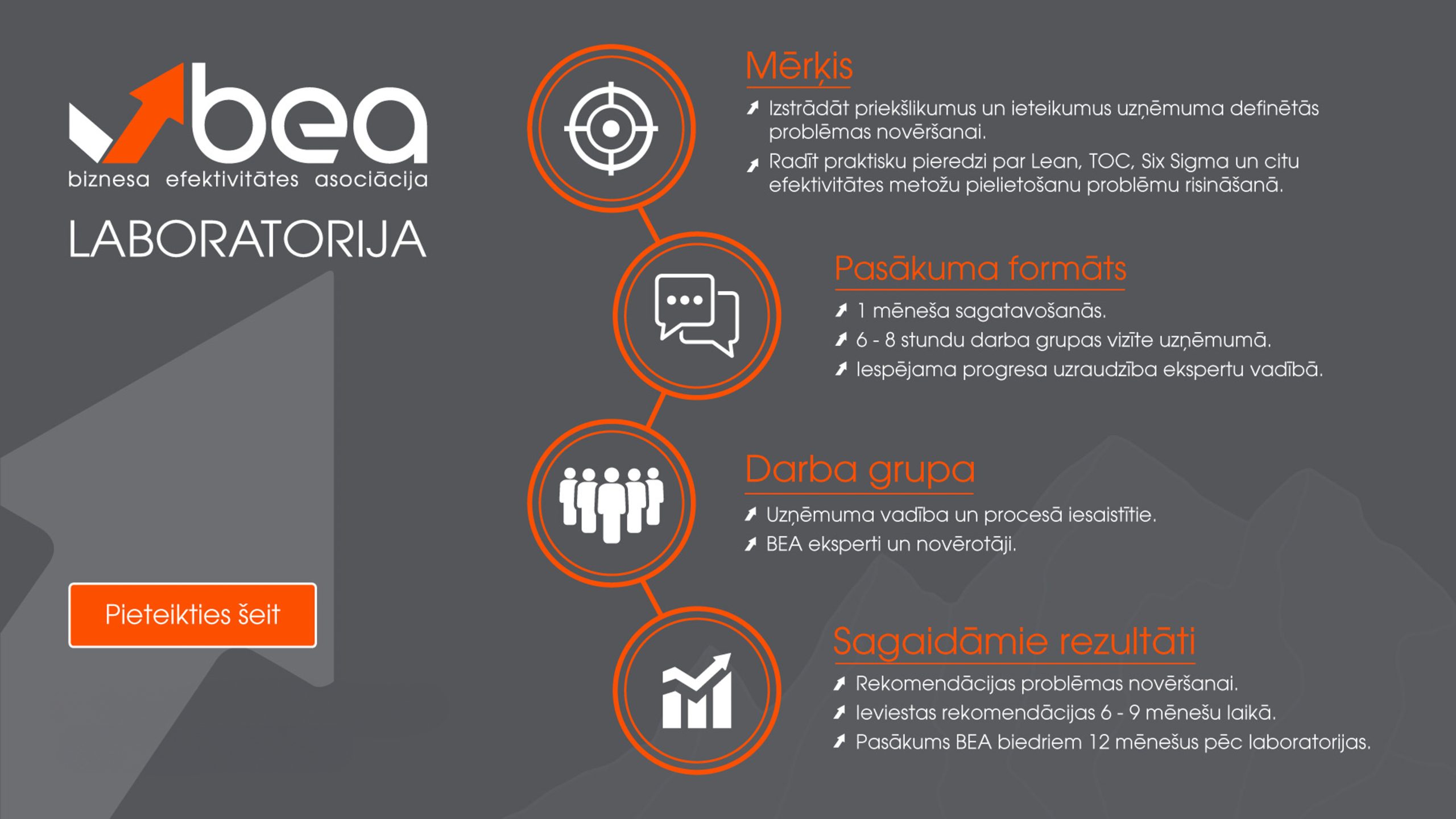 Piedāvājumi / BEA laboratorijas BEA devums Pieredzes apmaiņas vizītes biedru uzņēmumos Mācības par efektivitātes paaugstināšanas metodēm Grāmatas Literatūra BEA laboratorijas BEA diagnoze